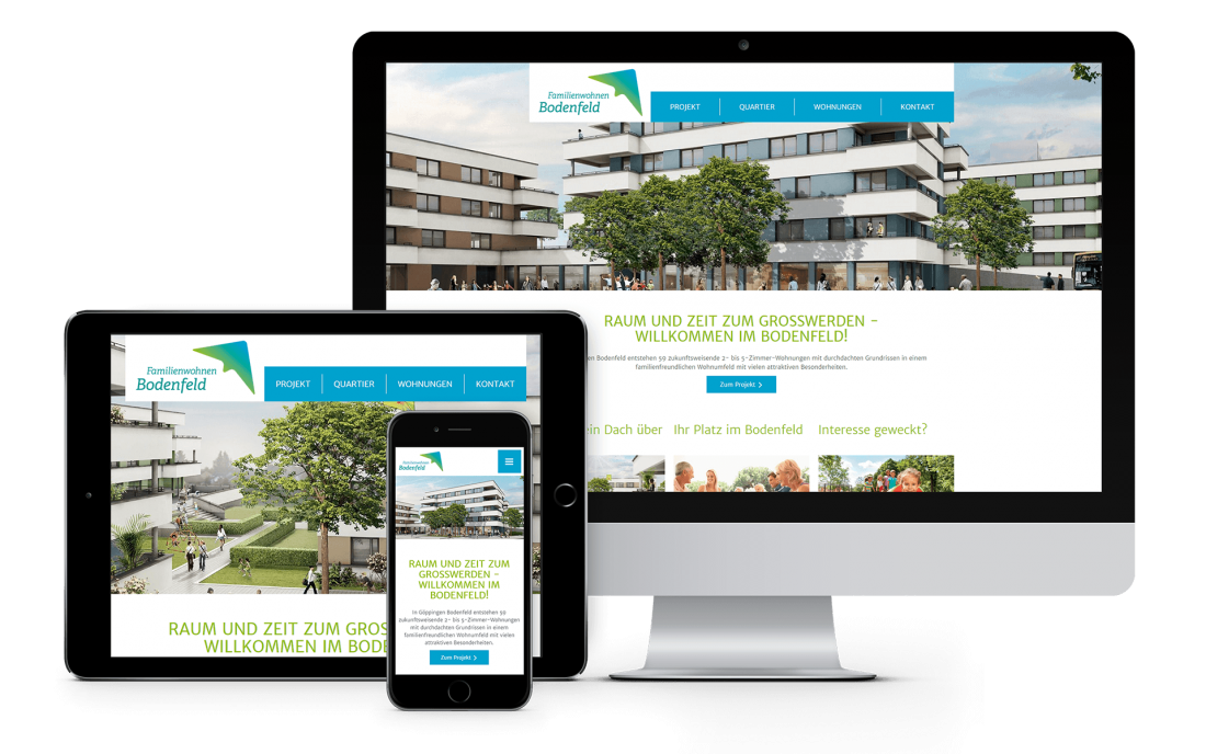 Auf einem ehemaligen Areal einer Gärtnerei am südlichen Rand von Göppingen investiert die Wohnbau GmbH Göppingen rund 22 Mio. EUR in ein Wohnquartier mit „zeitlos-moderner“ Architektur. Wir wurden beauftragt, die Standortvorteile für das Wohnbau-Konzept mit seinen vielen attraktiven familienfreundlichen Besonderheiten herauszuarbeiten und dem neuen Quartier ein individuelles Gesicht zu geben. Nach dem eigenen Corporate Design, entwickelten wir ein Kommunikationskonzept zur Vertriebsunterstützung und Vermarktung der 59 großzügigen Wohnungen. Neben einem umfangreichen Verkaufsfolder mit Imagebroschüre und detaillierten Bau- und Projektbeschreibungen übernahmen wir die inhaltliche Konzeption des Internetauftritts sowie die Beratung und Betreuung weiterer externer Kommunikationsdienstleister.